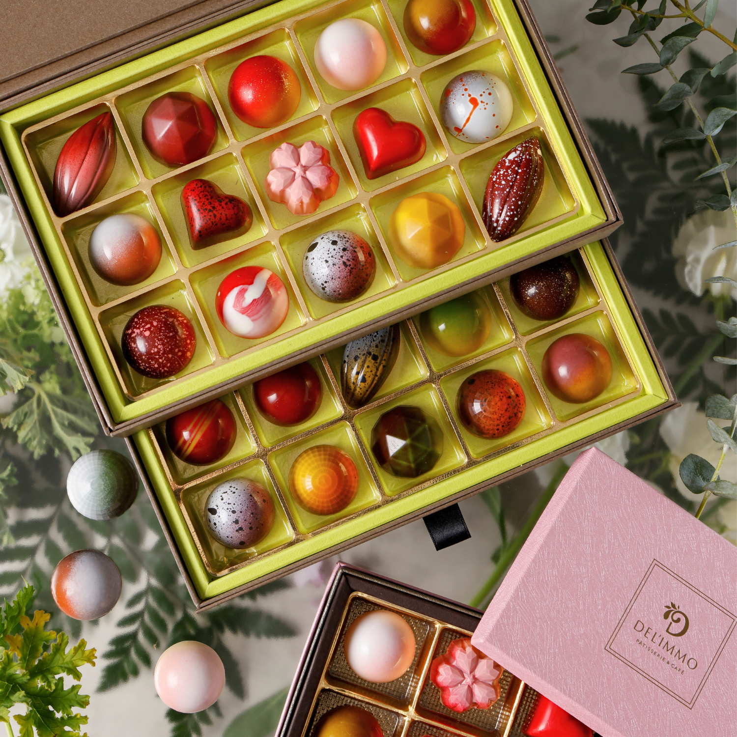 新作のボタニカルシリーズをはじめ、デリーモのケーキの味わいを表現したショコラまで、まるで宝石のように輝く30粒を厳選。特別なギフトにも、自分へのご褒美にもふさわしい、贅沢なグランアソートです。