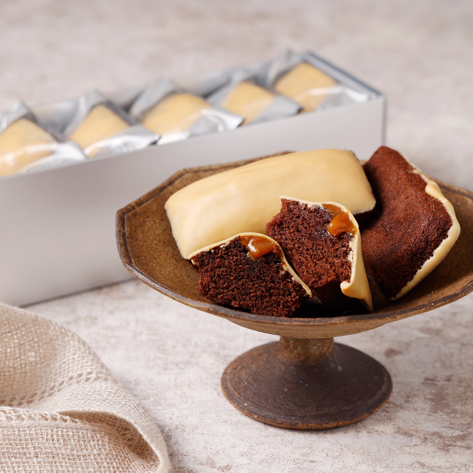 表面には、ブロンドチョコレートとホワイトチョコレートのミルク分をじっくり焦がして仕上げたチョコレートを使用。