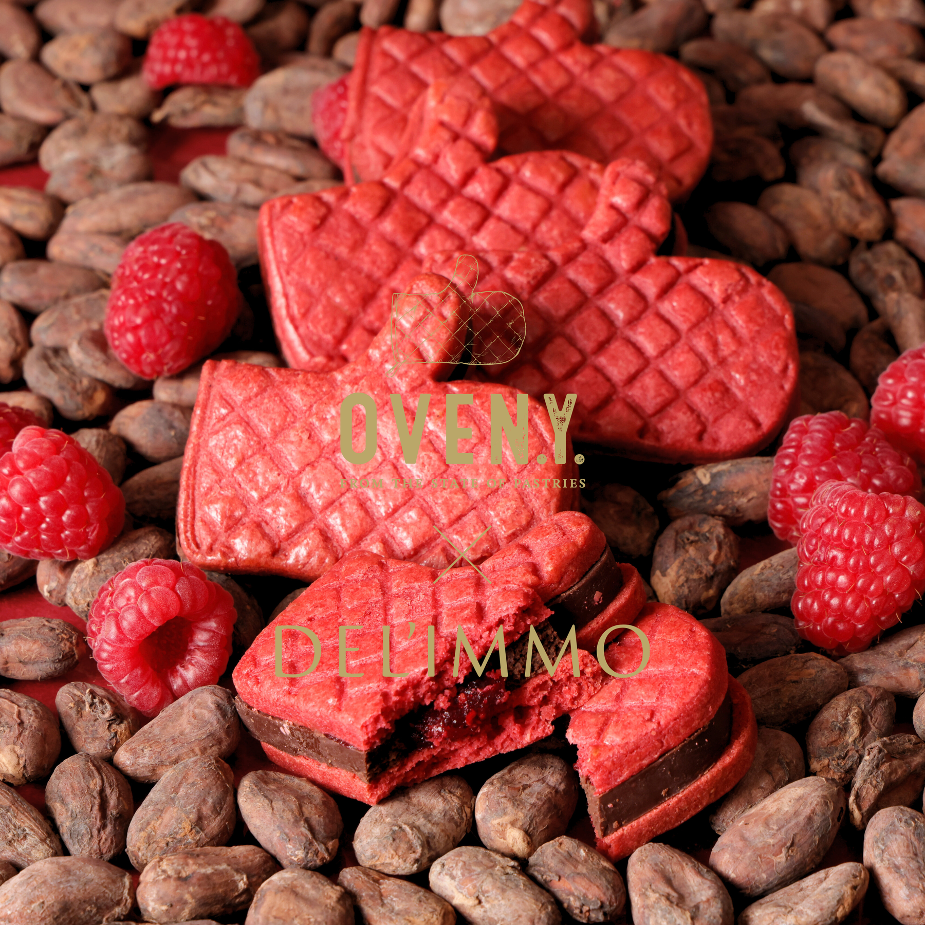 ショコラティエ江口和明が手掛けるOVEN.Y.(オーブンニューヨーク)のミトンサンドと、デリーモの味が融合。ラズベリー色のミトンサブレに、ビターチョコレートと甘酸っぱいラズベリーソースをサンド。コラボ限定デザインのパッケージでお楽しみください。
