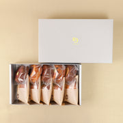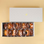 口どけよく焼き上げるために金属製の型と熱風の出るオーブンで焼き上げます。表面は香ばしく中はしっとり焼き上げる事で、中に詰めるガナッシュやクリーム、ジュレのコントラストが特徴的な味わいを生みます。また、保存料などを使わずに常温で持ち運べるようにしています。