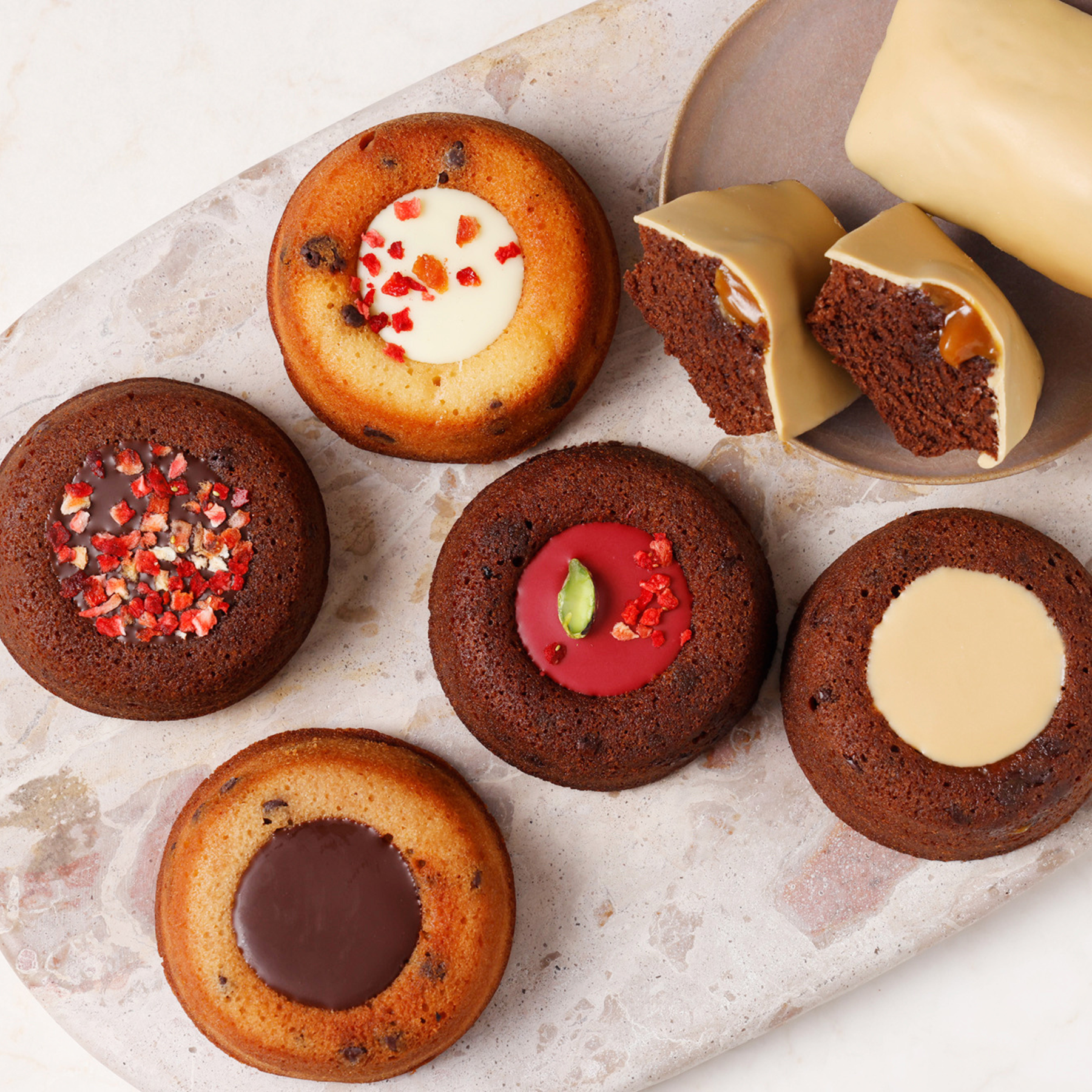 フィナンシェブロンドキャラメルは、手作りの塩キャラメルと本物のチョコレートで生地を仕上げ、どの状態でも美味しく味わえるよう工夫しました。ティグレは、焦がしバター香るしっとり生地にチョコチップやクリーム、ジュレを重ね、上にはパリッとしたショコラをのせています。