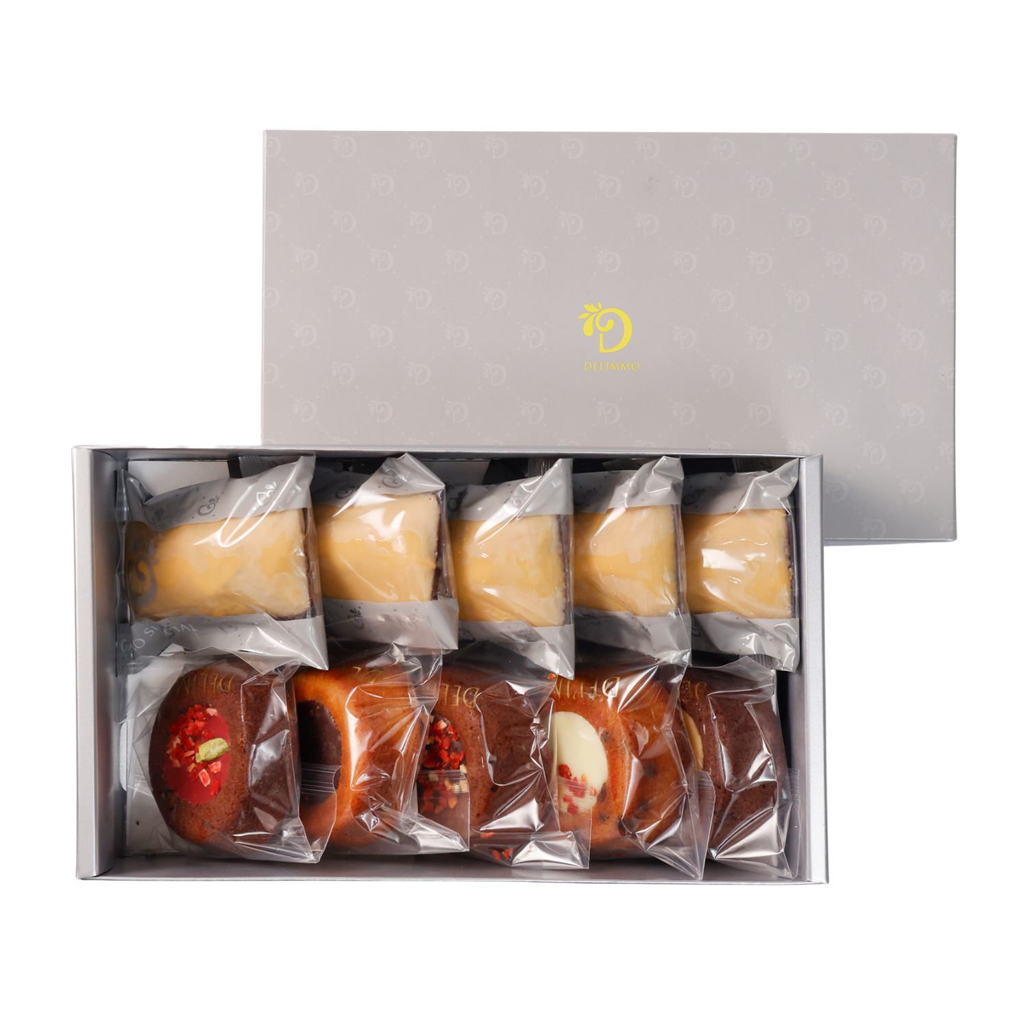 デリーモで人気の焼き菓子を食べ比べできる贅沢なアソートです。濃厚な塩キャラメルをサンドしたフィナンシェ ブロンドキャラメルと、焦がしバターが香る味わい豊かなティグレを詰め合わせました。