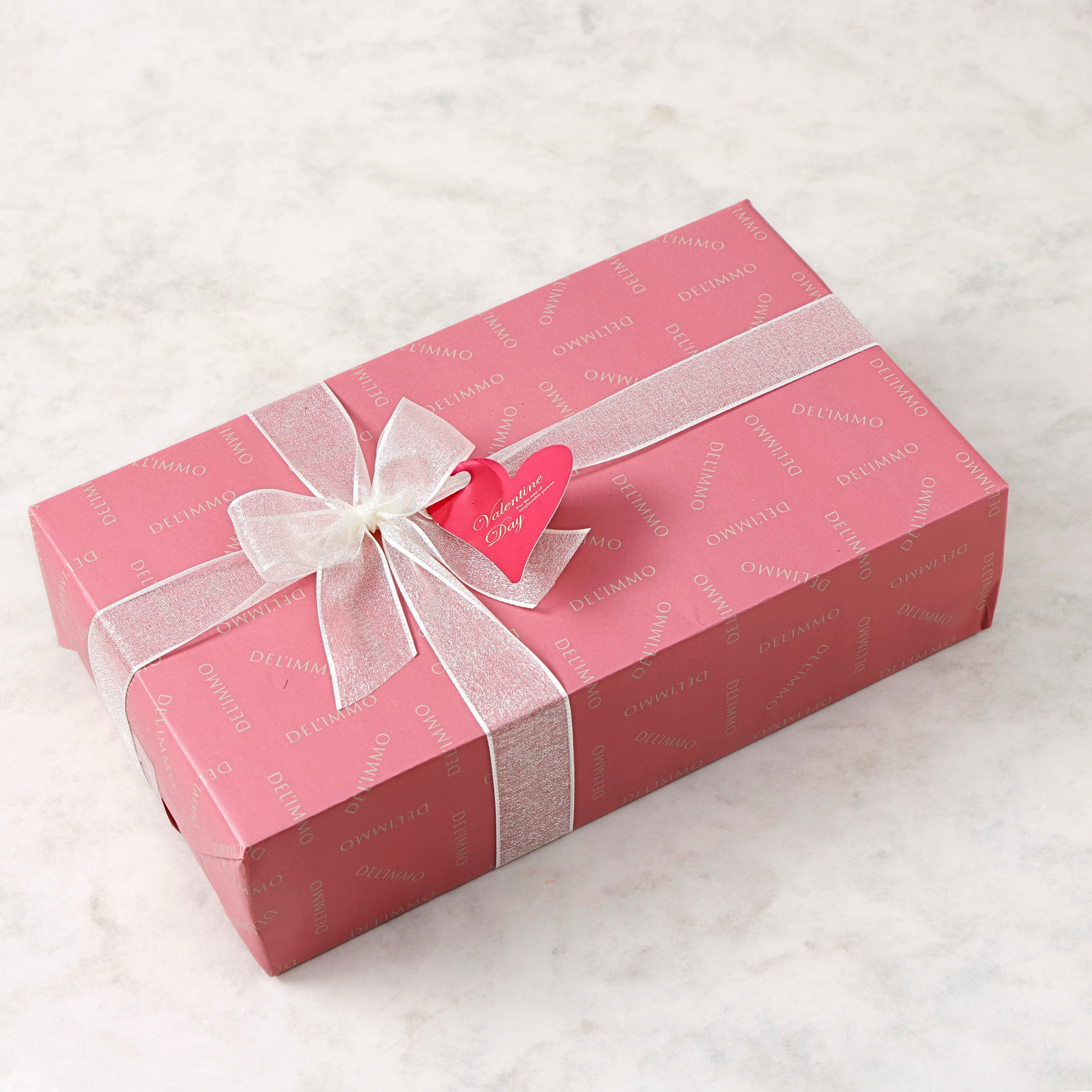 バレンタインらしいピンクボックスに、ピンクのリボンと「Valentine Day」のハートタグを添えました。