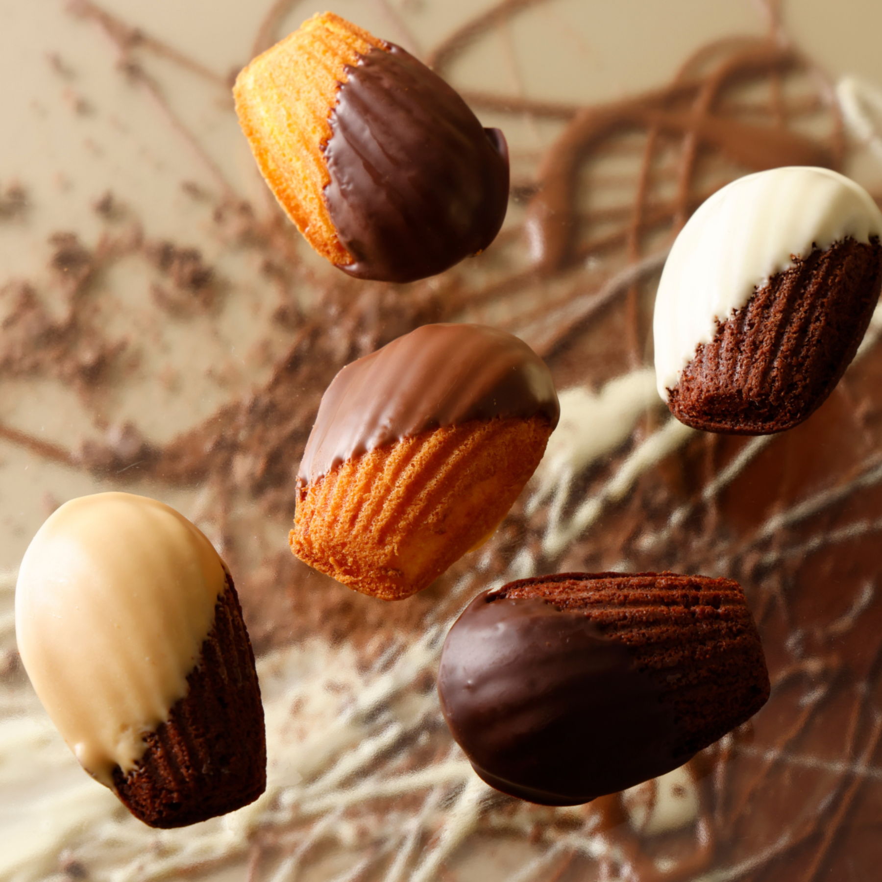 圧倒的なカカオの苦みの中に華やかな酸味が特徴のチョコレートをショコラのマドレーヌにディップ