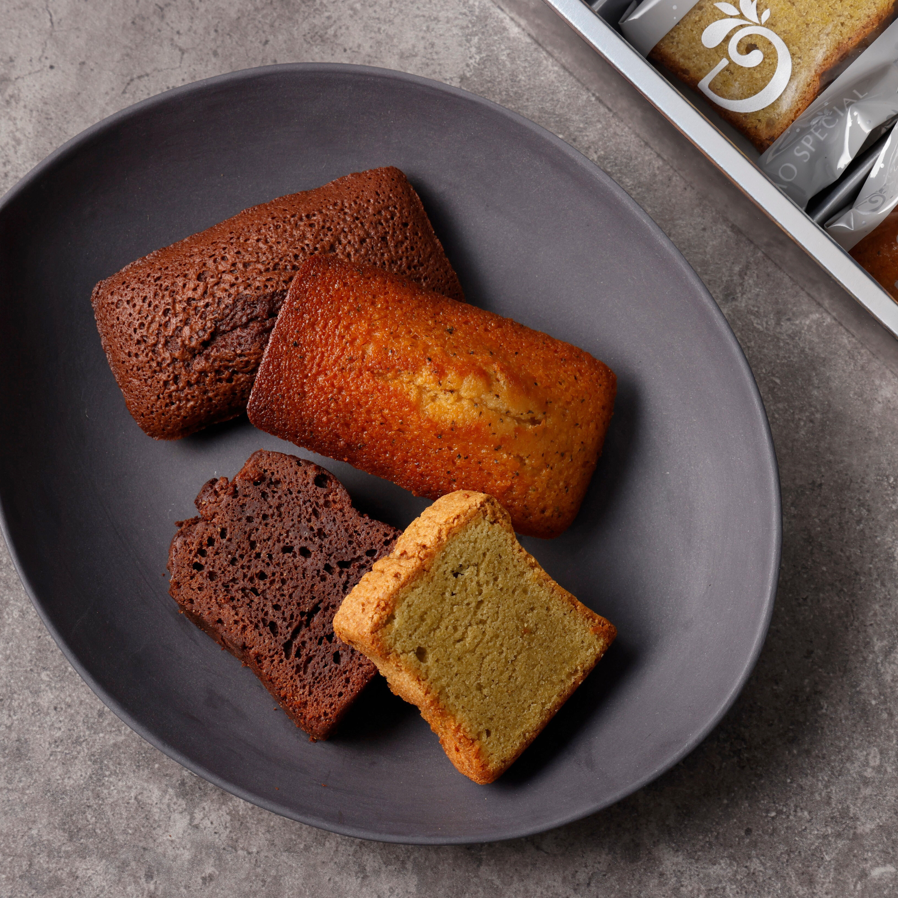 フィナンシェとケイクで構成される焼菓子アソートは、しっとり柔らかな食感とフレーバーごとの上品な香りが特徴。