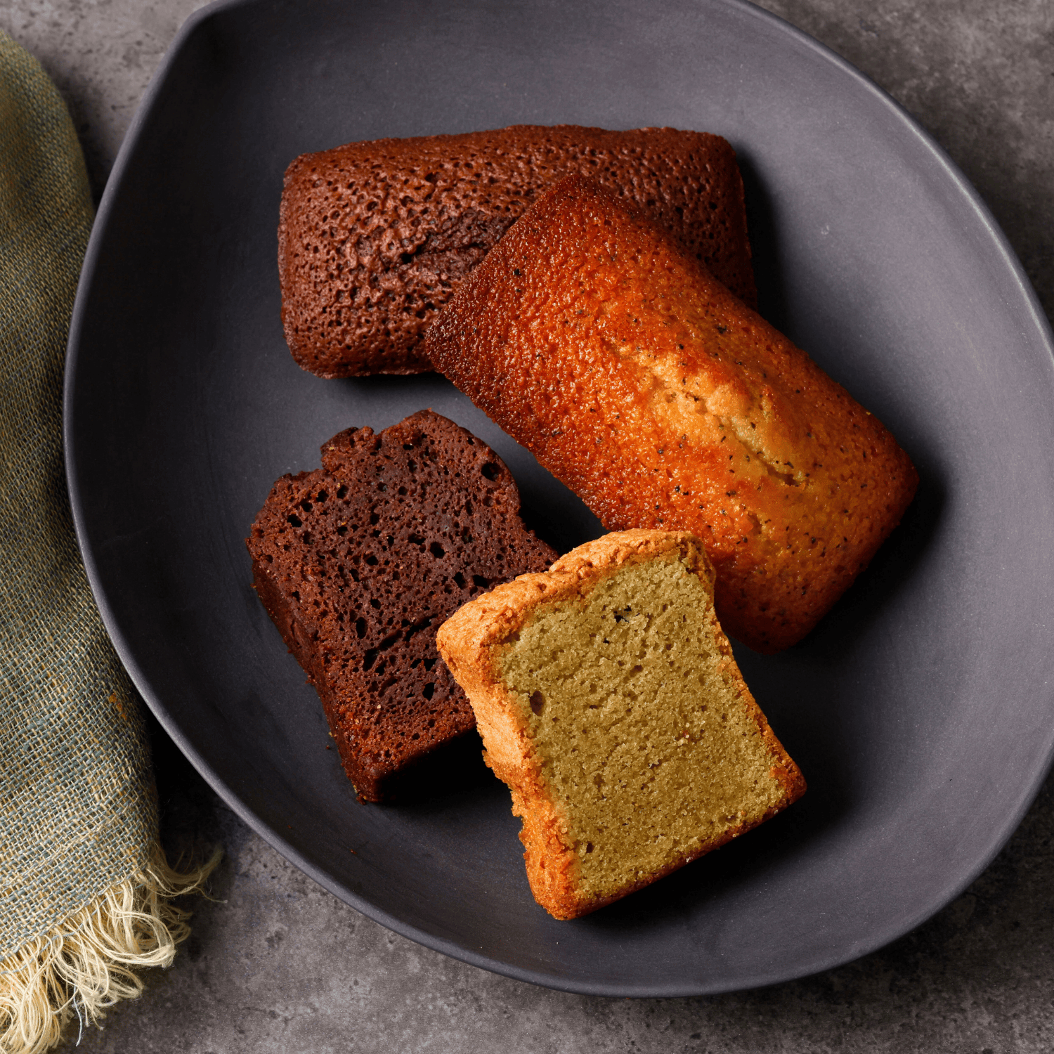 しっとりと柔らかな食感と、素材の風味を活かしたフレーバーごとの香り、そしてしっかりとついた焼き色が美しさを引き立てます。ひとつひとつ丁寧に仕上げた特別な焼き菓子を、心ゆくまでお楽しみいただけます。