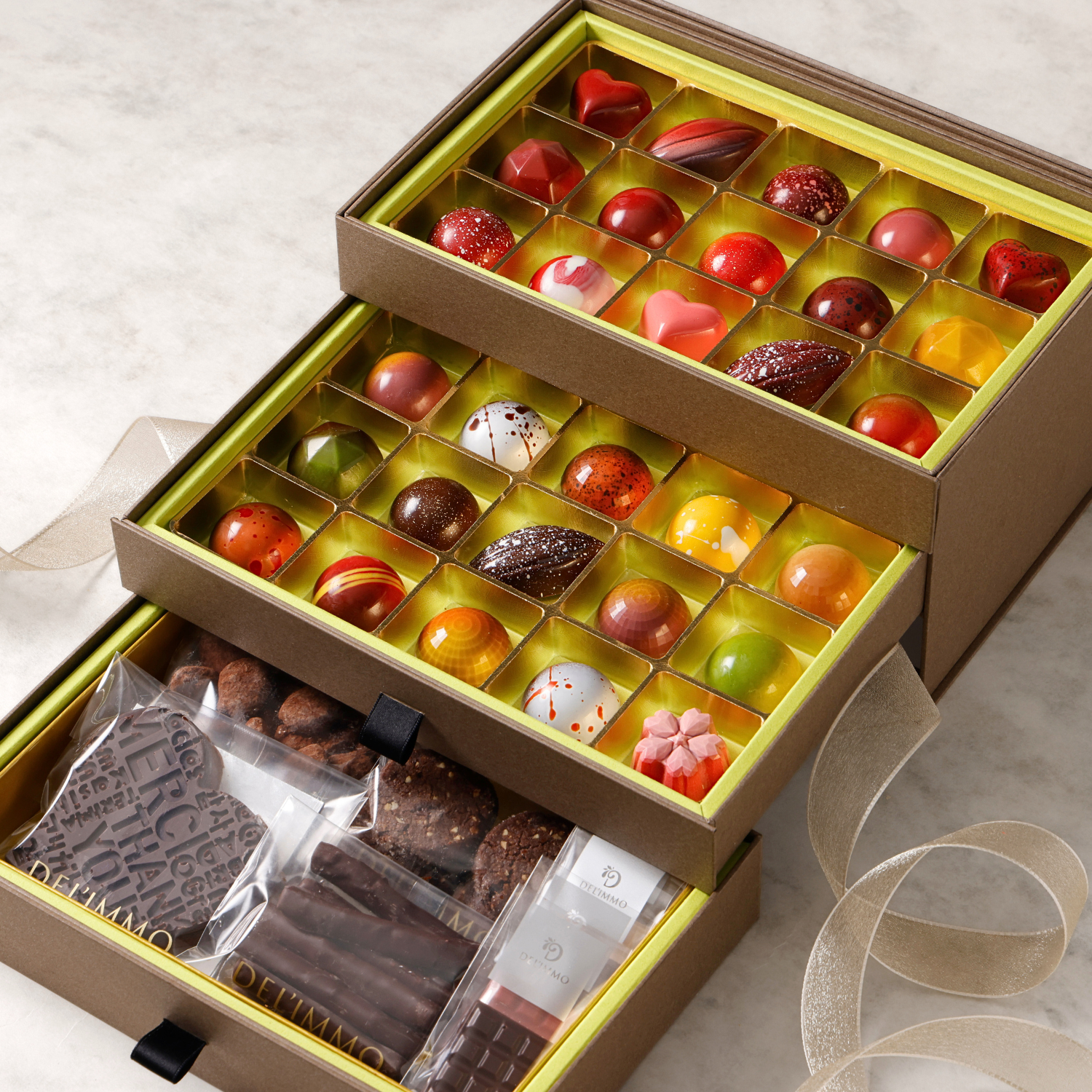 新作のカクテルシリーズをはじめ、ケーキの味わいをショコラに凝縮したケーキシリーズ、ソフトキャラメルを忍ばせたアムールドショコラまで。今年お届けするショコラのすべてを詰め込んだ、圧倒的なボリュームのコンプリートセットです。