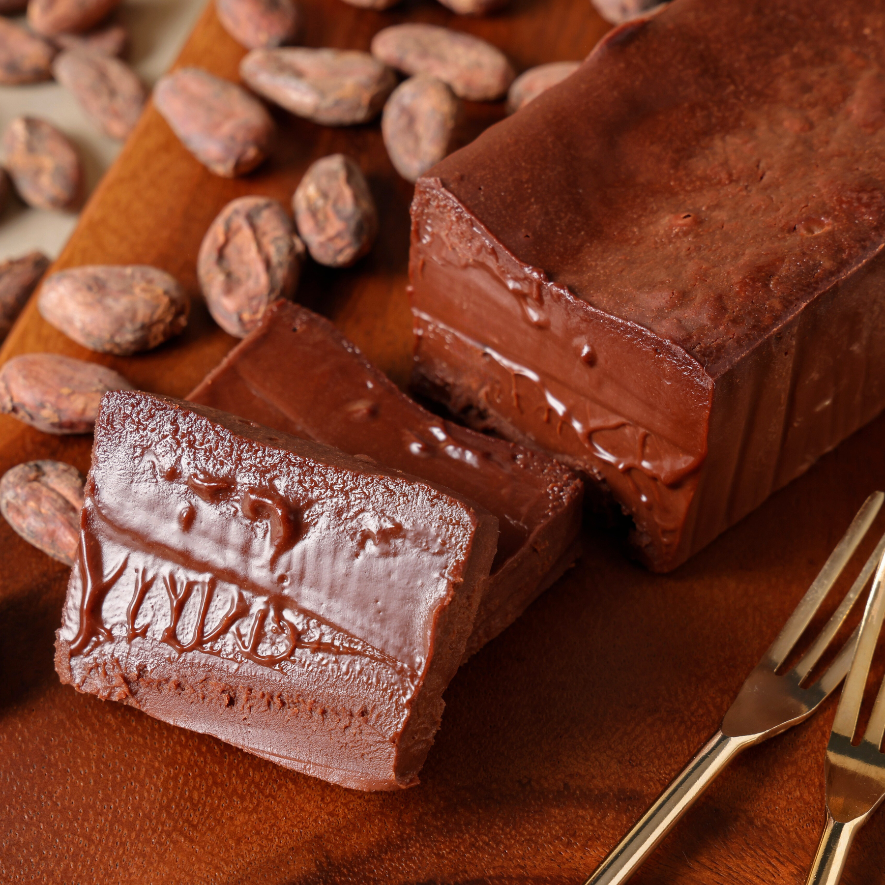 カカオ70%のビターショコラを贅沢に使用し、ショコラティエが丁寧にじっくりと火入れをして焼き上げたテリーヌショコラです。濃厚ながらも、フローラルや柑橘を思わせる爽やかなアロマが特徴。温度によって変化する口どけと、深いカカオの余韻をお楽しみください。